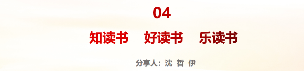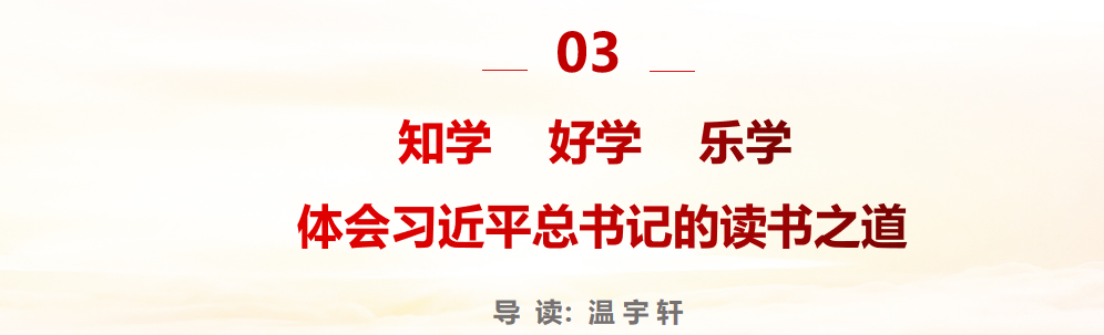 知学、好学、乐学。习近平总书记曾通读《资本论》三遍,写下18本读书笔记,习近平总书记在河北梁家河当知青的时候,就很喜欢读书,白天上山劳动,晚上就在土窑洞里点着煤油灯读书,还在梁家河办了扫盲班,教乡亲们读书、写字。温宇轩老师谈到,我们要学习习近平总书记的读书之道,广读书、深读书,学而致用。