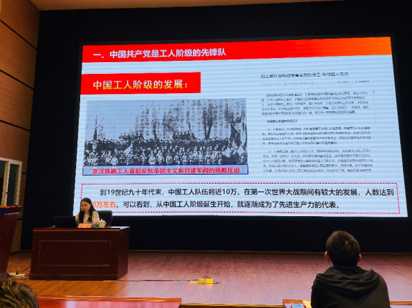 史维生讲授了题为“党的纲领和奋斗目标”的党课。史老师从“党的百年瞬间”切入,回顾了中国共产党百年奋斗之路和取得的伟大成就。接着以我党一大到十九大为脉络,梳理了各个时期我党的重要会议、重大决定、重要转折点,讲述了中国共产党的历史过程。史老师用系列生动的故事、事迹,带领学员们深刻解读中国人民是如何站起来、富起来再到强起来的。
