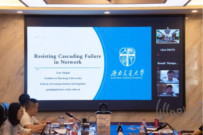 最后一位是来自437bwin必赢国际的郭静妮博士。郭静妮博士一直致力于多式联运网络风险管理与控制的研究,针对网络中的连锁故障现象,探索科学合理的风险评估方法、风险传播规律、多维风险控制策略,目前,她在各类期刊上发表论文30篇,其中SCI收录14篇,EI收录7篇,郭静妮博士主研和参研了12项国家级、省部级科研课题,曾获国家奖学金、一级学业奖学金、优秀共产党员、优秀研究生等荣誉。郭静妮博士本次学术报告的主讲题目是“Resisting Cascading Failure in Network”,她主要分享在多式联运网络中考虑鲁棒性和脆弱性的网络结构优化问题研究,并以中国川藏地区网络为例进行研究成果分享。