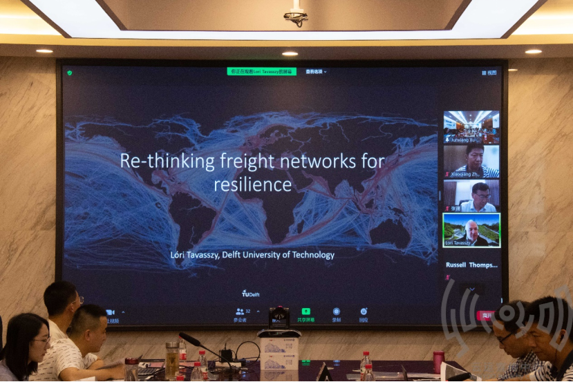 首先是来自荷兰代尔夫特理工大学货物与物流研究院的Lóri A. Tavasszy教授。Tavasszy教授的研究涉及城市、国家和全球层面的货运建模,除了出版教科书“货运网络建模”外,他还在各种期刊上发表了70多篇论文,在书籍和会议论文集上发表了150多篇文章,Tavasszy教授目前担任世界运输研究学会科学委员会主席,并且是多个国家和国际专业委员会的成员。他本次的学术报告以“Re-thinking freight networks for resilience”为主讲题目,他重点介绍了考虑弹复性的货运网络建模优化思路和相关实证研究成果、应用场景。