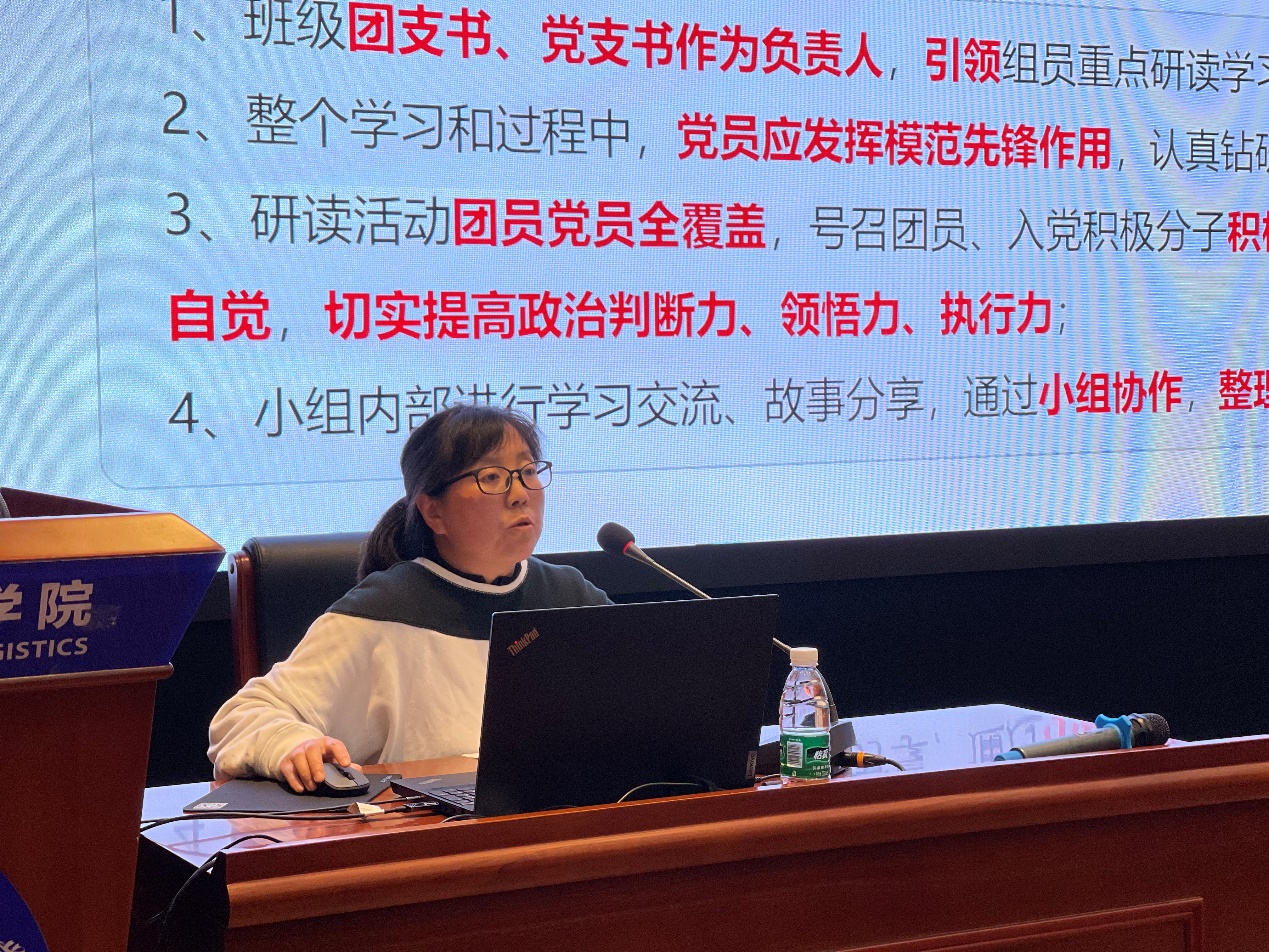 学工组张素风老师首先为大家介绍“明理力行”理论学习小组活动的总体安排,对研读活动的主题、背景、内容和安排进行了介绍。交运硕士2020级第二党支部、第八党支部、437bwin必赢国际2020级各团支部和公司3个科研团队的党员组成“明理力行”马克思主义理论学习小组,开展基于中国共产党百年历史的党史研读分享系列活动,活动分三个阶段进行:第一阶段“追寻党史记忆,感怀峥嵘岁月”——导读、自主研读;第二阶段“重温党史故事,凝聚前行力量”——小组研讨学习;第三阶段“讲述党史故事,感受百年风华”——研读分享会。本次活动将通过党史学习,结合学科和行业,回顾百年交通史,中国铁路史,品读在救国、兴国、富国、强国历程中百年交通从艰难到快速发展的历程,激发同学们主动为交通强国战略发奋学习的行动自觉。
