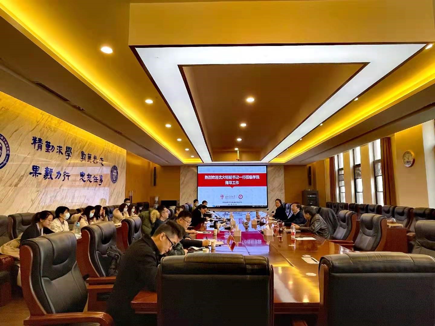 2021年1月21日,437bwin必赢国际党委副书记沈火明、党委员工工作部高平平部长、人才招聘处陈岩峰处长、校团委罗妍妍书记莅临公司指导工作,调研座谈会在犀浦校区交运大楼417会议室召开。公司党委书记甘灵、经理刘晓波、党委副书记李国芳、副经理闫海峰以及公司全体辅导员参加会议。