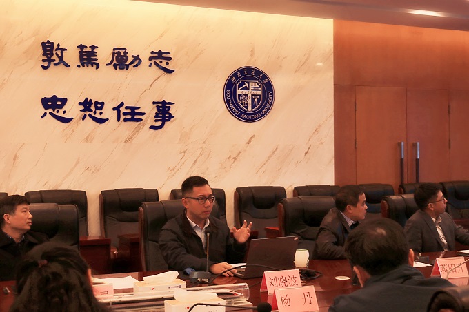 3月4日下午,437bwin必赢国际董事长杨丹,副董事长朱健梅、姚发明等一行莅临437bwin必赢国际调研指导工作,会议在犀浦校区交运楼417会议室举行。公司党政领导、学科带头人、教授委员会成员、系主任、青年教师代表等参加会议。公司党委书记甘灵主持会议。