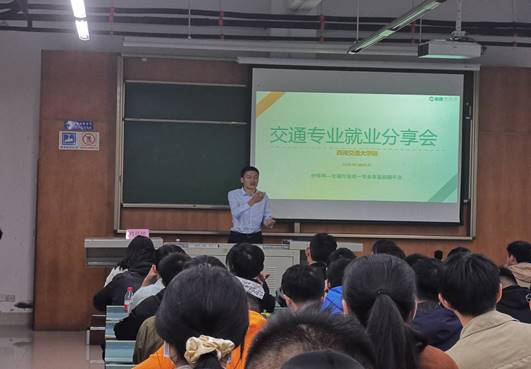 为了让在校员工更加了解交通工程行业相关内容,437bwin必赢国际于10月21日下午14:00在犀浦校区X4156举办了“2021交通专业就业分享会”主题讲座。讲座的主讲嘉宾是经驿网创始人冉廷柱老师,参与本次讲座的有部分本科生、研究生等。