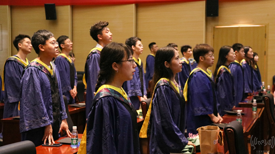 授位结束,谈罢未来,在即将结束离校之际,全体起立,深情地再唱一次那无数次响起在耳边的校歌。