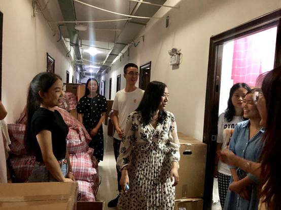 公司党委李国芳副书记随后前往宿舍区探望关心员工入住情况。过程中同学们纷纷表示“这个环境太好了”、“很宽敞不潮湿,通风也很好”。李书记询问了大家行李整理情况,并嘱咐大家在适应新校区的同时好好复习期末考试。