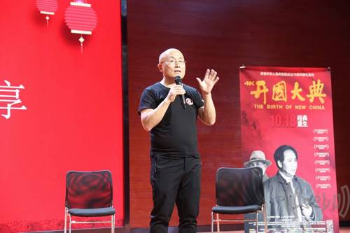 座谈会结束后,周先生在交大举办了4K《开国大典》的在川高校首映活动。谈到为什么选择在交大进行首映,周先生说:“将《开国大典》这部三十年前的电影修复到4K、5:1如此好的状态,希望有更多的年轻人成为受众,尤其是二十岁左右的年轻人,毫无疑问,同学们是最好的观众。再者,作为交大毕业生,又是这部电影的总制片人,公司是最适合来作为首映的地方。”