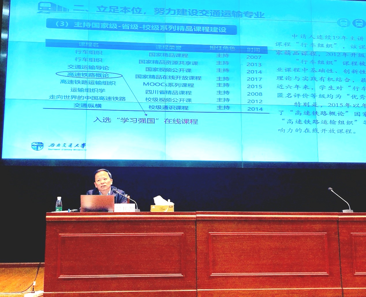 彭其渊教授从牢记使命,坚守教书育人第一线;立足本位,努力建设交通运输专业;脚踏实地,潜心致力于科学研究;尽心尽责,全力推进公司发展四个方面分享自己从事教育事业30多年来的所思所想所感。