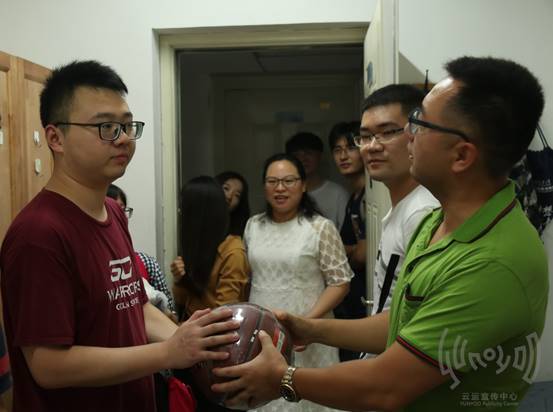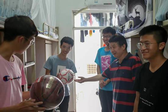 公司领导向各位新生赠送了慰问礼物,鼓励同学们锻炼身体,健康学习。