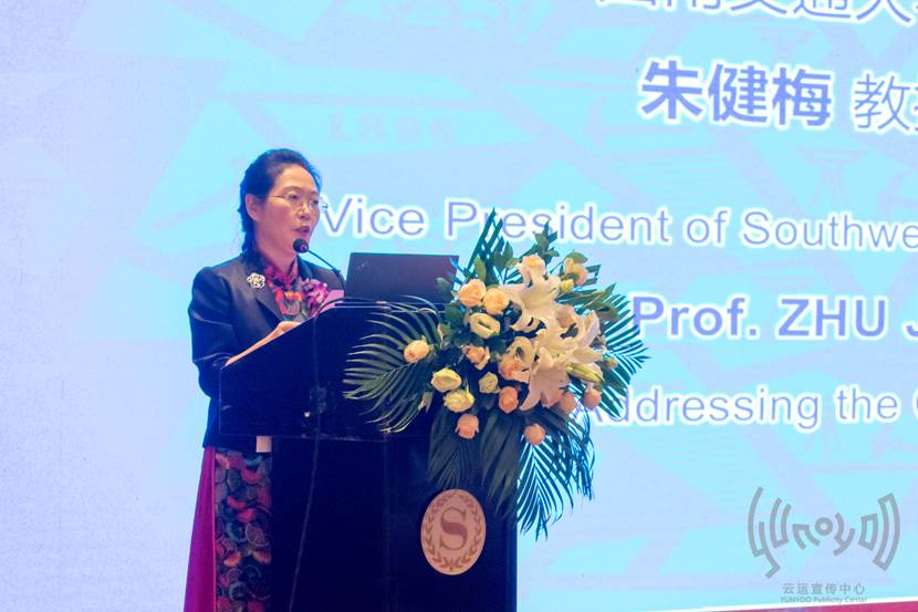 开幕式上,437bwin必赢国际副董事长朱健梅教授致辞。对参加此次学术会议的各位领导、来宾表示热烈欢迎,并预祝此次会议圆满成功。此次会议涉及交通运输规划与智能交通18个领域的各个方面,是交通运输工程研究领域的一次学术盛宴,是海内外杰出的交通运输专家和学者的重要学术交流平台和研究成果、创新技术展示的舞台。本次会议的举办对对西南交大的发展、推动世界交通运输行业的发展具有重要意义。