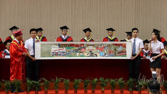 党委王顺洪书记为毕业生代表赠送毕业礼物并接受回赠。
