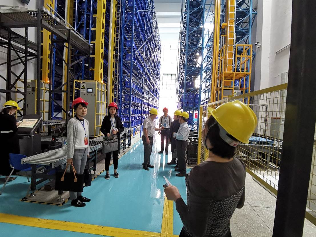 专家组考查自动分拣与智能堆垛实验室、包装检测中心。