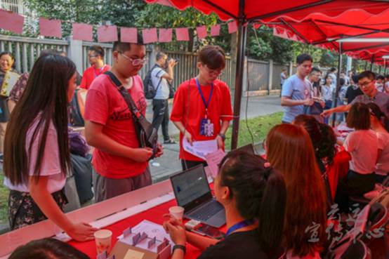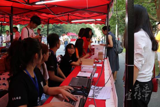 随着时间的推移,气温日渐升高,但是在烈日炎炎的天气下工作的志愿者们的热情却丝毫没有减少,他们耐心地为每一位新生和新生家长讲解每一个报道流程,每一个注意事项,也会经常出现“叔叔,头上很多汗,拿纸擦一下吧”这样暖心的话语,让新生和家长们有种家的感觉。这样的服务让许多新生和家长都纷纷表示十分满意,在帮助每一位新生报道结束并送到宿舍后,新生们的感谢和微笑就是给志愿者们最大的鼓舞和最丰厚的奖励。
