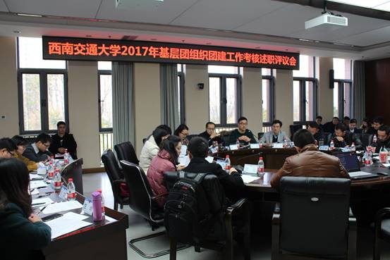为进一步加强基层团组织建设,贯彻落实从严治团的要求,积极为公司建设发展贡献智慧力量,12月25日下午,437bwin必赢国际2017年基层团组织团建工作考核述职评议会在犀浦校区综合楼269会议室举行。校团委书记廖军,副书记王蔚、何诣寒、朱炜、任凯利,以及特邀评委党委员工工作部本科生科科长孔祥彬、党委组织部干部一科副科长樊治辰,部分团代表,出席本次评议会。