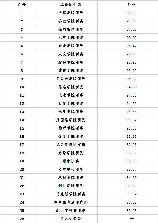 最终,综合自我评价、综合评价和现场素质三方面的考核成绩,公司团委以97.13分的成绩获得全校基层团组织考评第一名。