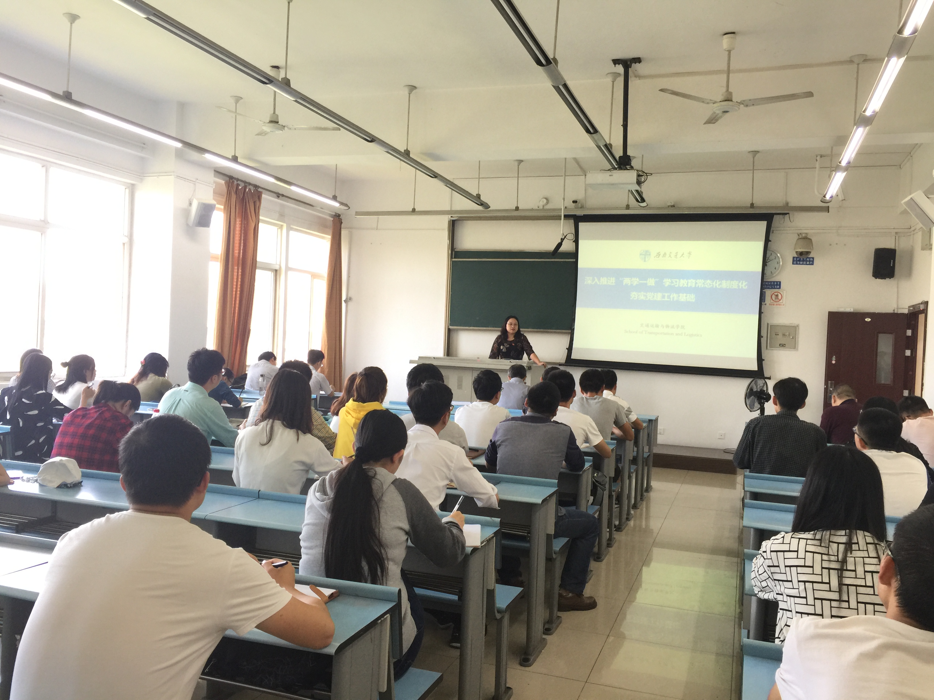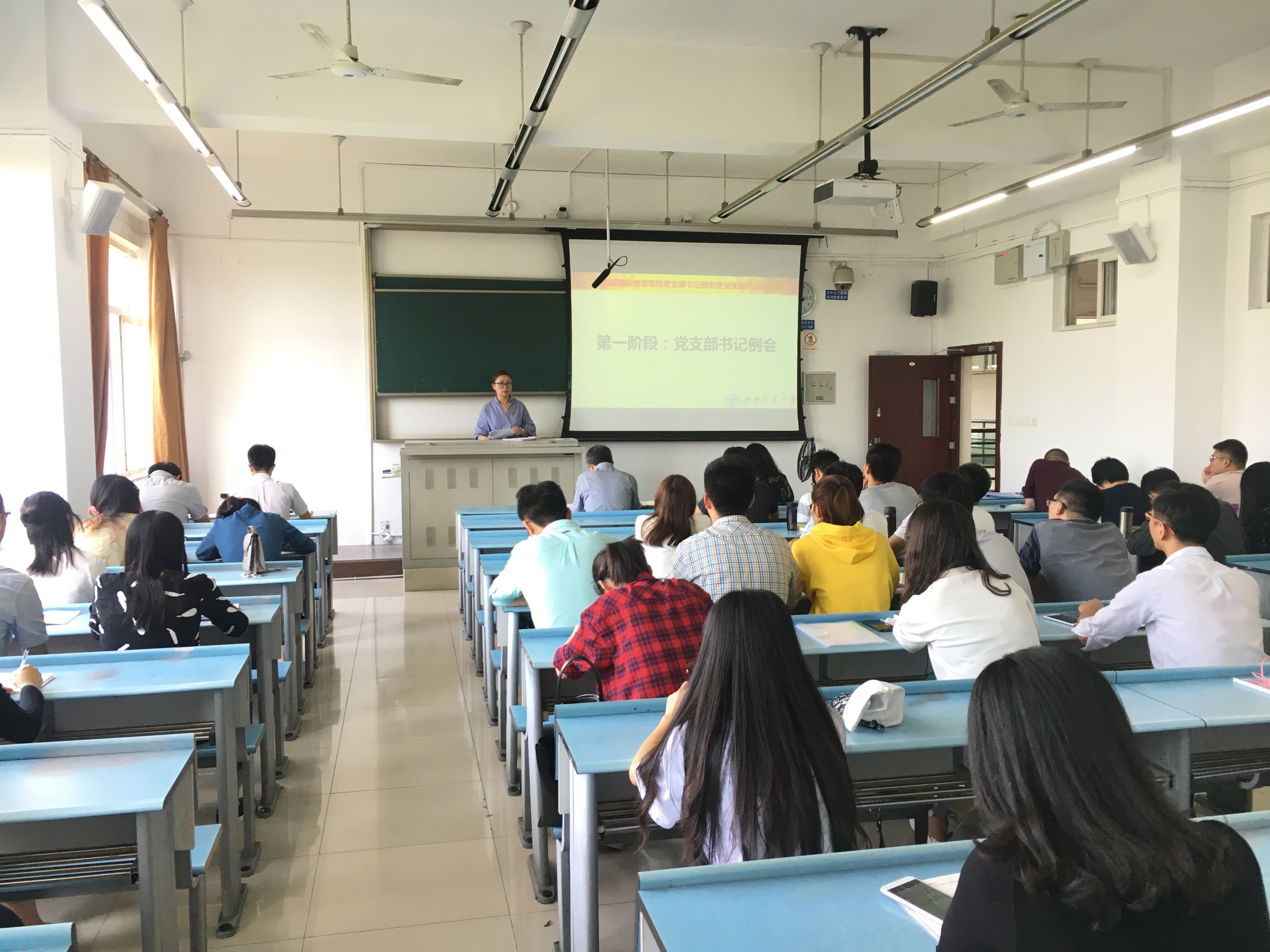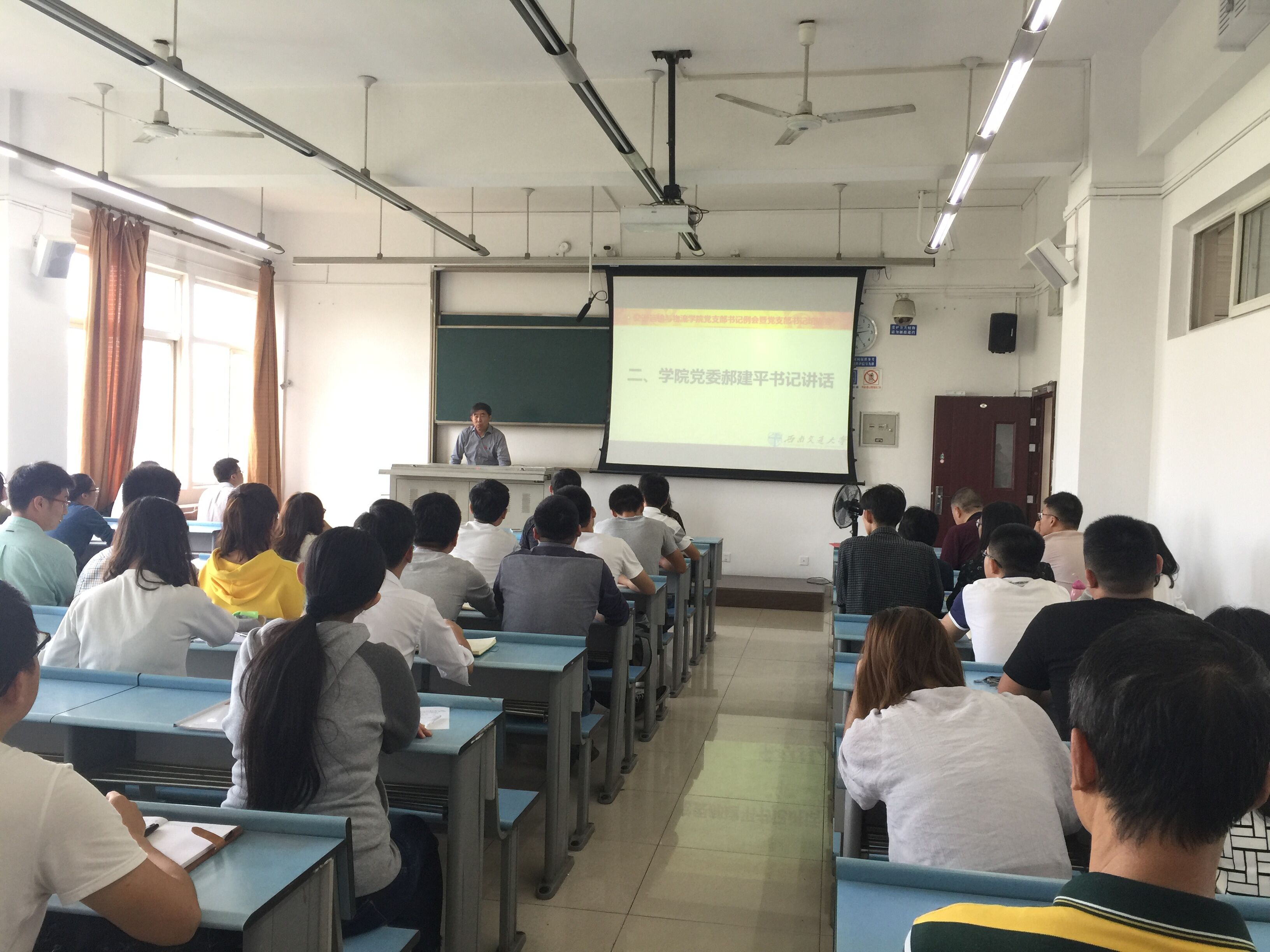 2017年9月28日下午2:00,437bwin必赢国际党委在犀浦校区X2527教室召开党支部书记例会暨党支部书记培训会,重点学习了习近平同志“7.26”讲话精神和公司十四届第八次全体(扩大)会议精神,并对“两学一做”学习教育常态化制度化督导要求进行了详细的部署。公司党委郝建平书记、党委李国芳副书记、党务秘书黄莺老师及全院教工、员工党支部书记出席了本次会议,会议由黄莺老师主持。