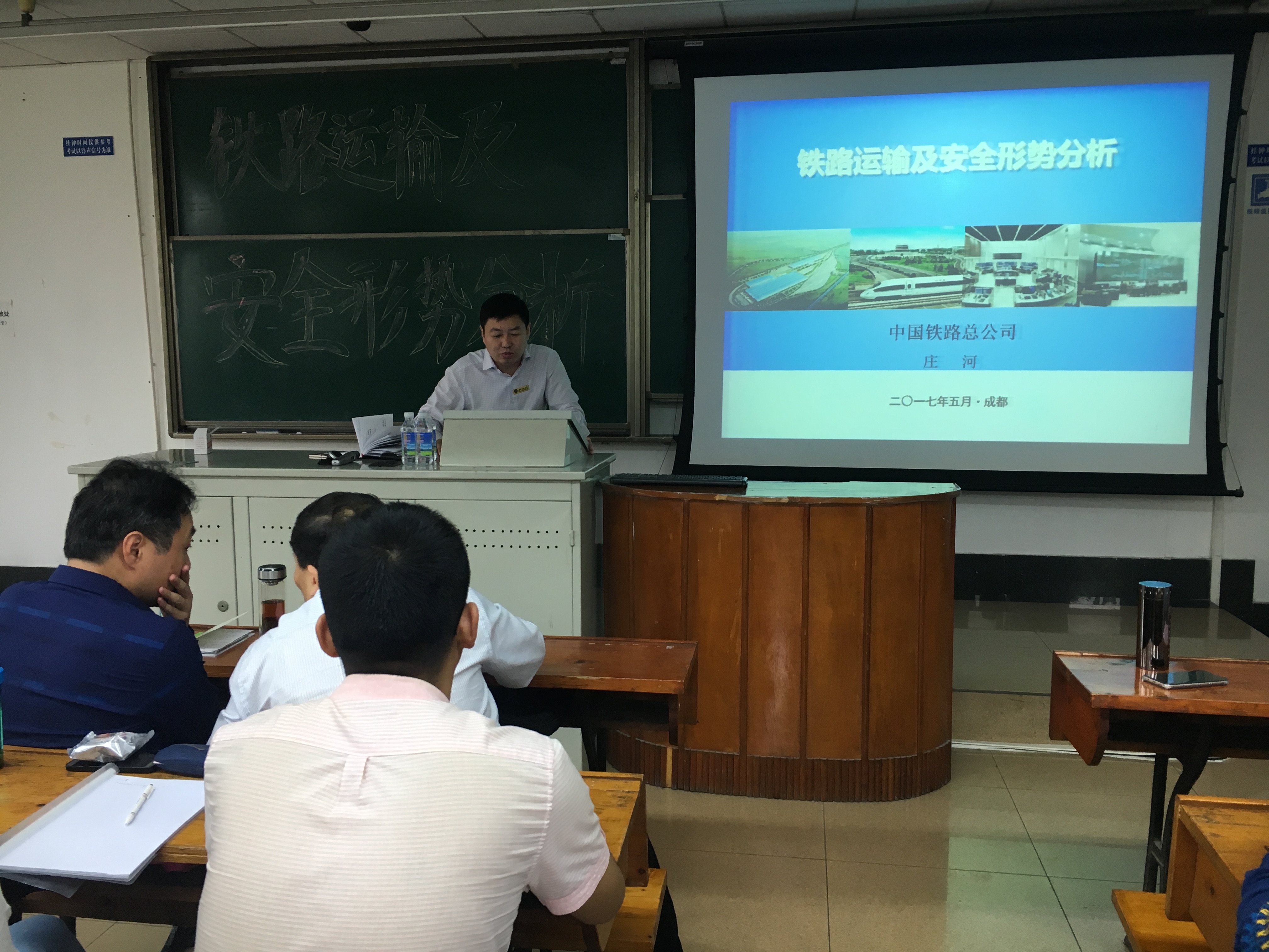 接下来,庄河教授就“铁路运输及安全形式分析”为全院师生开展讲座。庄河教授从宏观经济形势、铁路总体形势、总公司党组总体工作思路和近期工作部署、车务及调度重点工作、科研项目与研究展望以及相关思考展开讲座。其中,在宏观经济方面,庄河教授重点说明从数据分析了煤矿和钢铁产业的生产状况和进出口供需关系等内容,由此判断铁路运输需求的变化。庄河教授分享了自己在铁路行业上多年的感悟和体会,让同学们对铁路现场有了更为深入的了解。