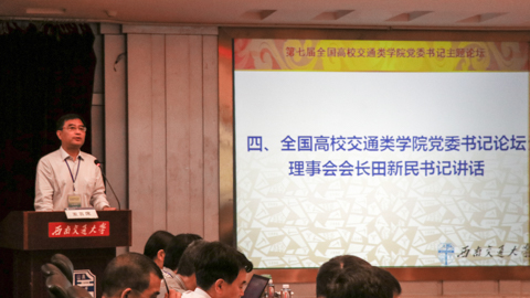 论坛开幕式最后,全国高校交通类公司党委书记论坛理事会理事长田新民书记讲话。田书记祝贺本次论坛如期顺利召开;感谢437bwin必赢国际党委高度重视、职能部门大力支持、437bwin必赢国际精心筹办,感谢书记们能在百忙中抽空赴会;希望代表们在主题交流中积极献策,希望各公司尽心尽力、尽职尽责地珍惜呵护交通类公司党委书记交流平台,希望各公司传承西南交大的优良传统和作风,传达第七届全国高校交通类公司党委书记主题论坛的精神。