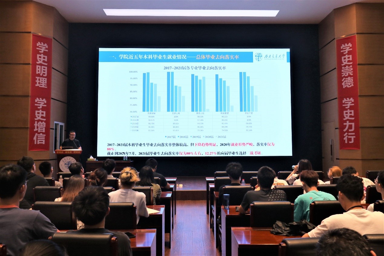 为进一步做好公司毕业年级就业升学动员,7月7日下午,由公司员工工作组主办的2022届本科毕业生就业动员大会暨研究生导师团队宣讲会在交运楼418报告厅顺利举办。公司党委刘继宗副书记、公司部分导师团队、2018级辅导员李冠辉老师以及全体2018级本科生参加此次会议。动员大会由2018级辅导员薄琳老师主持。
