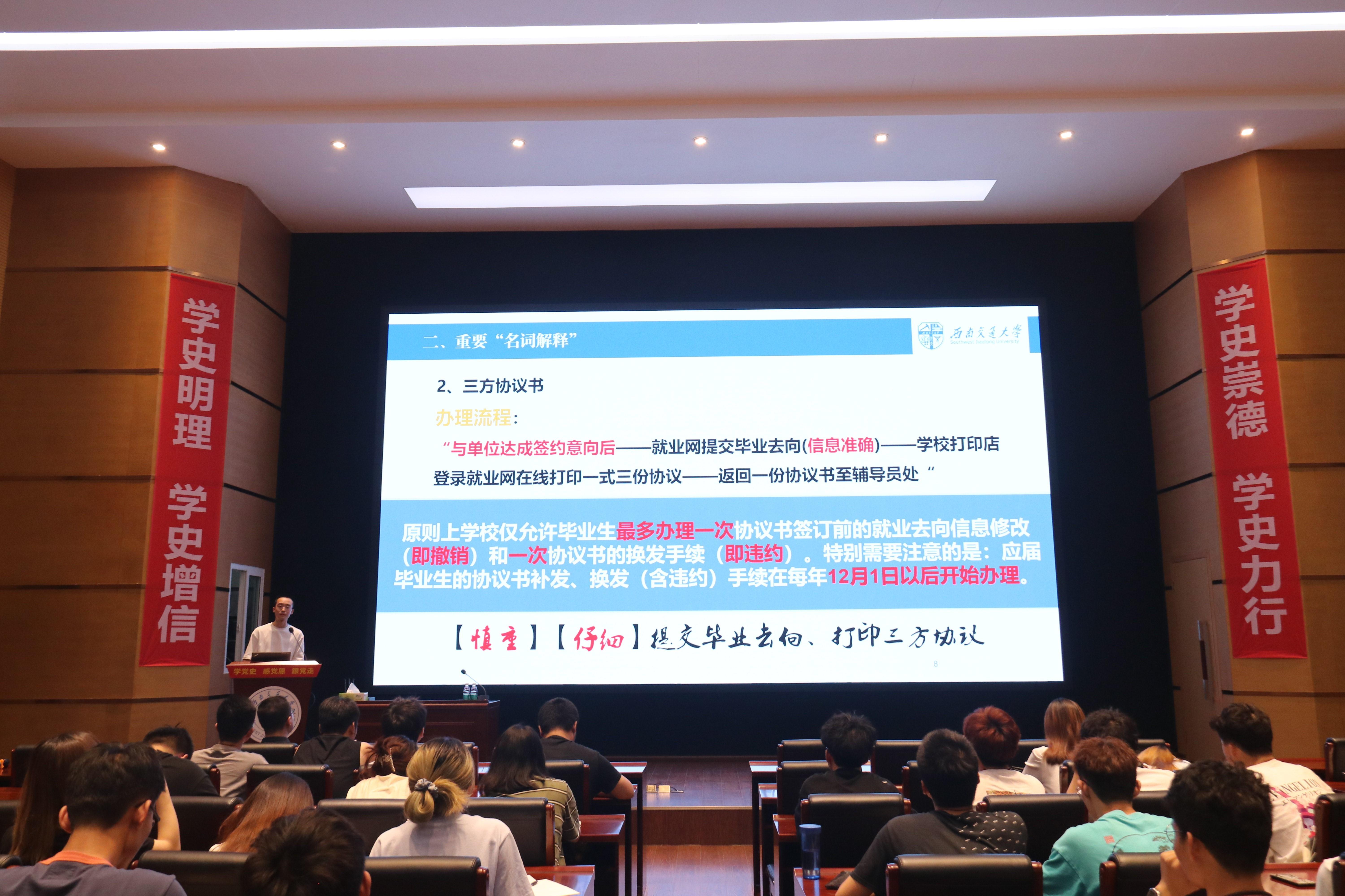 会上,公司党委刘继宗副书记以详实数据分析近年来毕业生就业去向的特点,希望同学们明确目标,提醒同学们无论是考研还是工作,在即将到来的假期中都要充分准备。