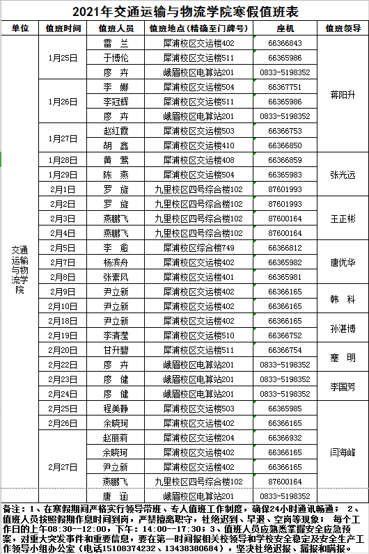 1、教职工放假时间:2021年1月25日(星期一)至2月27日(星期六),2021年2月28日(星期日)上班。
