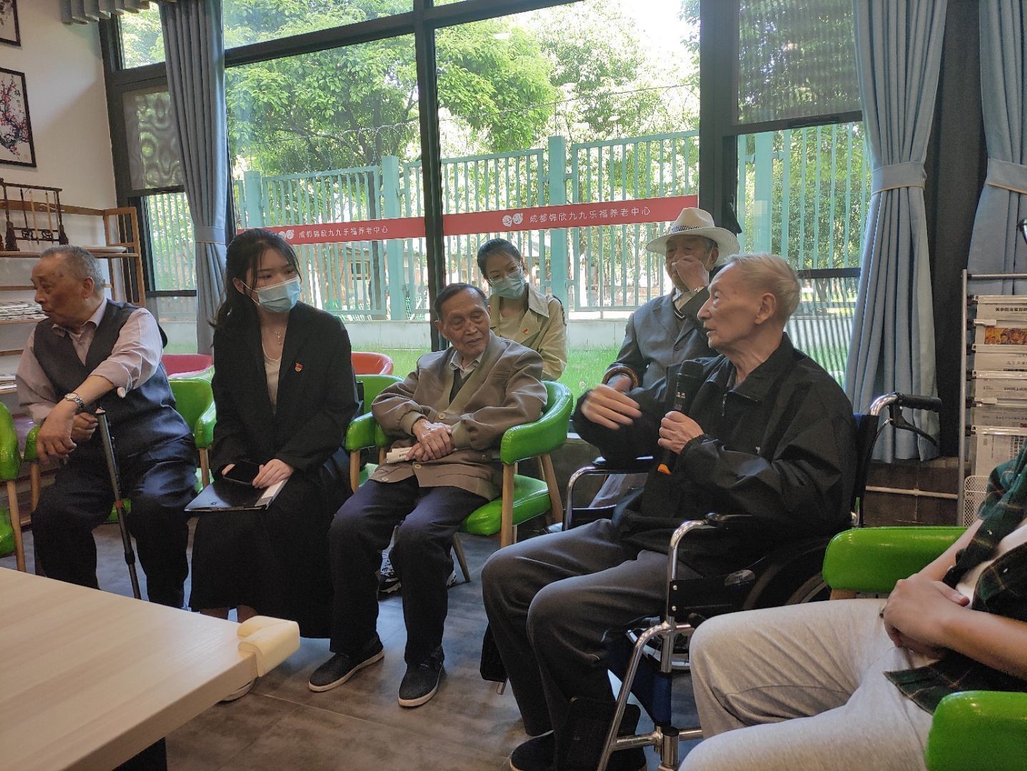 “莫道桑榆晚,为霞尚满天”。2021年4月29日,437bwin必赢国际本科物流第二党支部举办了“拜访九九乐福养老中心,共溯百年逐梦历程”党史学习活动的第二阶段:“拜访养老中心,聆听党的故事”。活动旨在让年轻的支部同志聆听老人们分享最真实的党史故事,感受老一辈中国共产党人对理想信念的虔诚执着、对党和人民的无比忠诚、对红色基因的传承弘扬,与此同时传承党的优良作风、弘扬中华民族传统美德,用心用情、尊老爱老;精准精细、竭诚服务。本次活动采用实地拜访开展座谈会的形式,由洪诗雨同志主持。