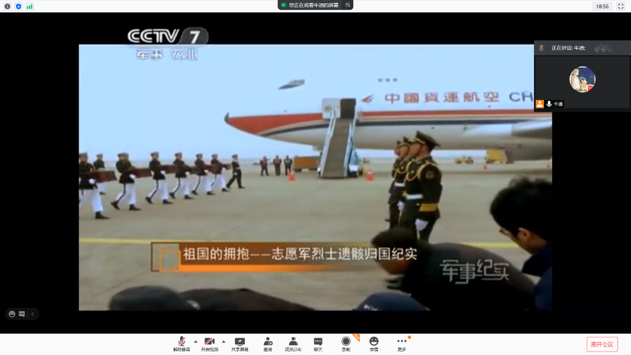 活动的最后,支部成员一起观看了志愿军遗骸归国纪实影片。“一个有希望的民族不能没有英雄,一个有前途的国家不能没有先锋”。英雄们和我们一样都是有血有肉的中国人,正是这些英雄愿意付出自己宝贵的生命,才换来今天我们幸福的生活。正如当下最流行的话:“我们不是生在一个和平的年代,只是有幸身在和平的中国”。哀悼,是为了深刻地铭记。我们牢记这一个个奋勇向前的英雄,从英雄事迹中汲取力量,担负起属于我们这一代人的责任和担当,在实现中华民族伟大复兴的道路上携手共进,争当先锋,再续辉煌。