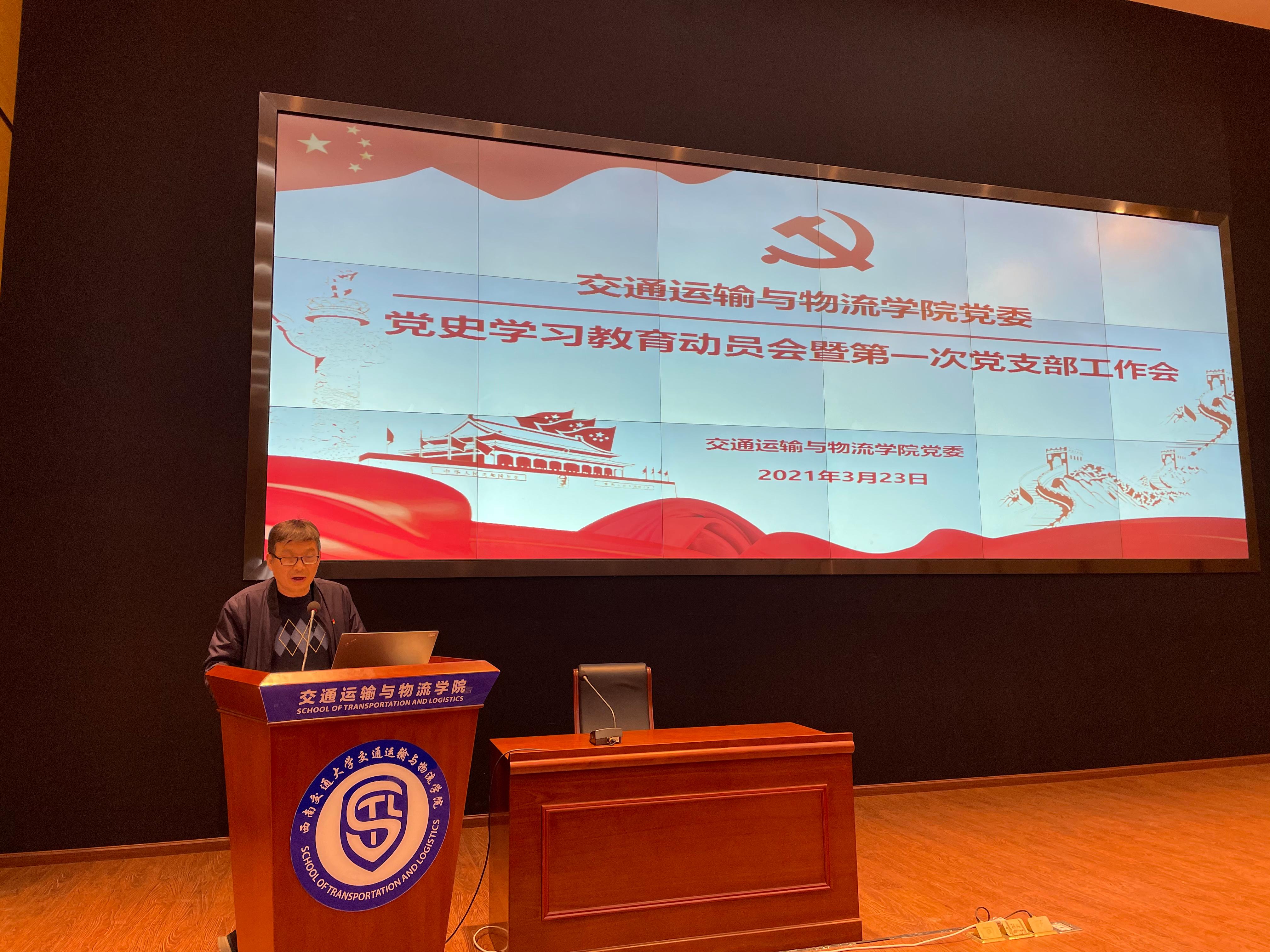 为学习贯彻习近平总书记在党史学习教育动员大会上的重要讲话精神,认真落实教育部、公司党委对开展党史学习教育进行全面动员和安排部署的通知要求。2021年3月23日下午,437bwin必赢国际党委党史学习教育动员会暨第一次党支部工作会在犀浦校区交运楼418会议室召开,437bwin必赢国际党委书记甘灵、党委副书记、纪委书记李国芳、党委副书记王正彬出席会议,公司全体师生党支部书记、支委参加会议。会议由公司党委副书记王正彬主持。