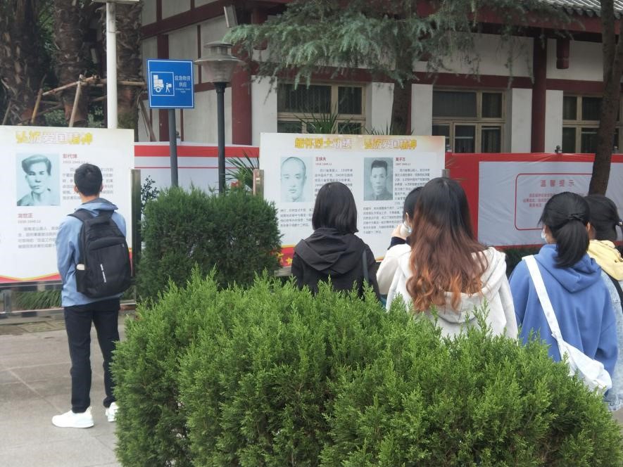 党员同志们对展板上所陈列出的人物事迹进行了学习与讨论,纷纷表示要以烈士们为榜样,在新时代传承好革命先辈身上难能可贵的精神气概。硕士20级第一党支部书记袁林同志对十二桥惨案的经过作了概括性的总结,并对本次参观学习活动的意义作出了解读:“知史、学史”是为了“懂史”。十二桥烈士们甘于为国奉献的精神劲头应该是每个党员都要具备的。每个时代有每个时代的历史机遇,如今的世界相对和平,但同时也暗潮涌动,中华民族和中国人民正在走一条很长的路,如何在决胜全面建成小康社会的关键期贡献出自身的一份力量,也是青年党员同志们需要考虑的。