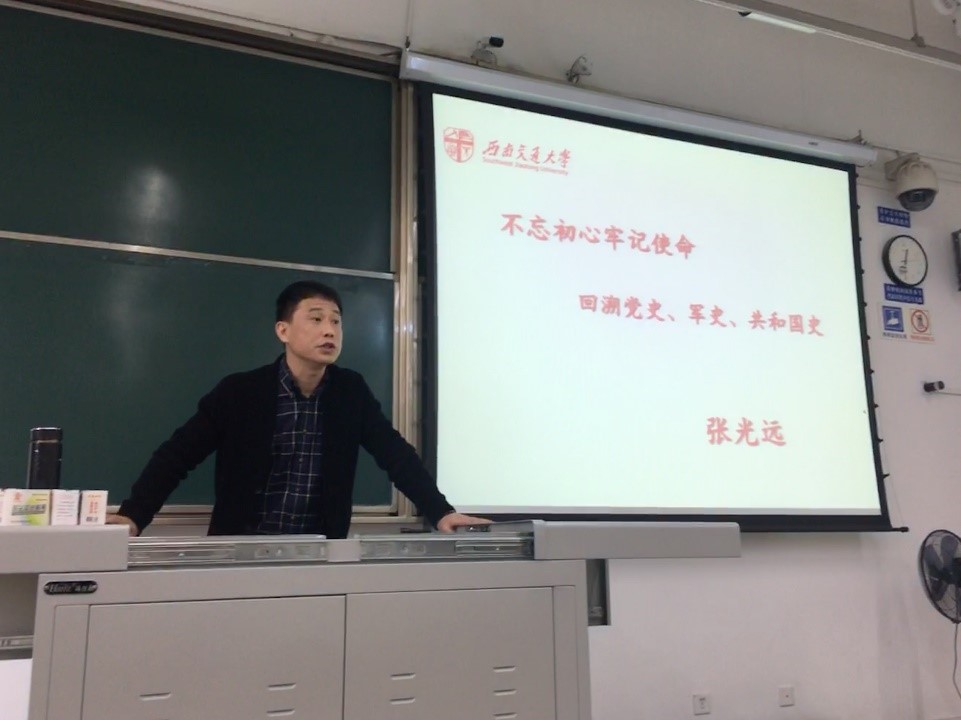 为扎实推进“不忘初心、牢记使命”主题教育,437bwin必赢国际党委张光远副经理2019年10月24日下午3:00在犀浦校区X2221为本科交运第二党支部、博士15级党支部、硕士19级第三党支部和硕士19级第八党支部全体党员讲授“回溯党史军史共和国史”专题党课。