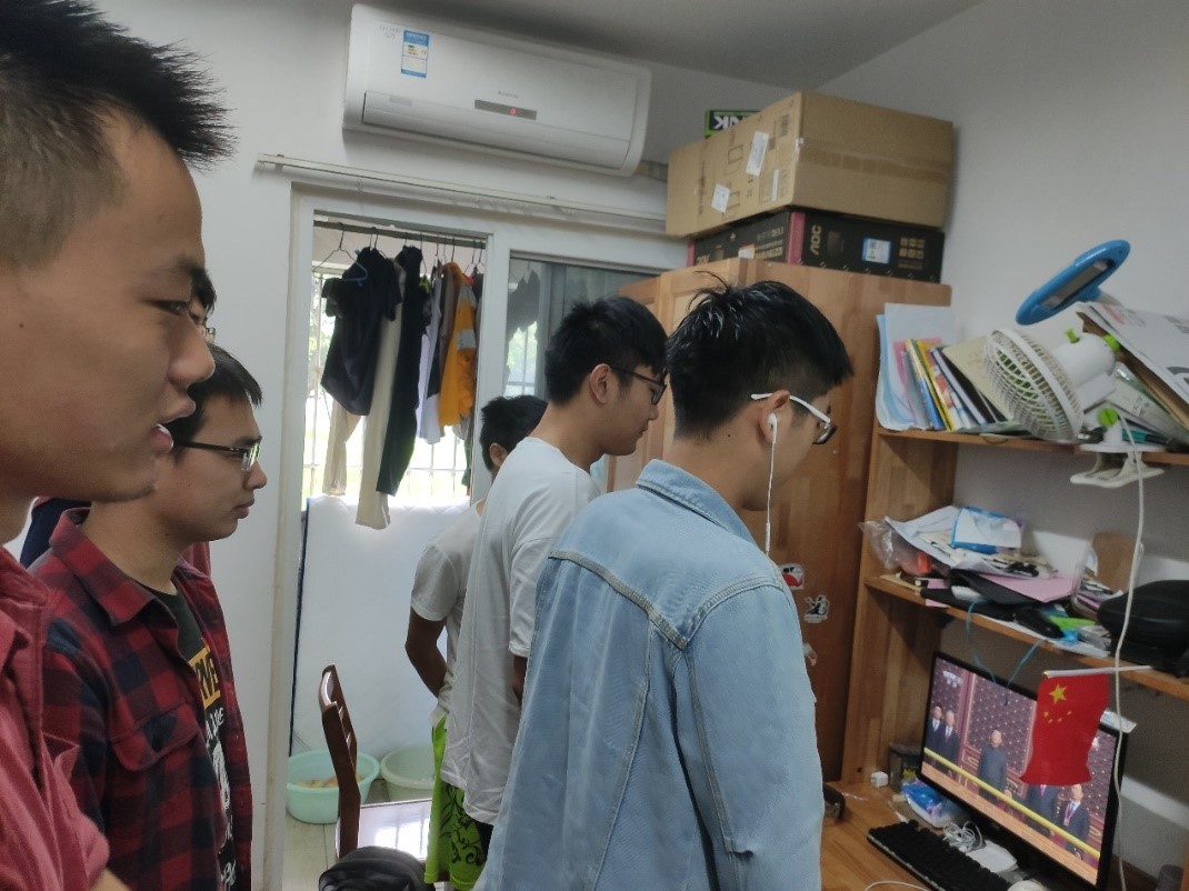 2019年10月1日,为庆祝中华人民共和国成立70周年,为祖国母亲庆生,共同祝愿祖国母亲更加繁荣昌盛,研究生各支部统一组织党员同志通过在交大体育馆、宿舍、家中等多种方式观看新中国成立七十周年大阅兵直播。