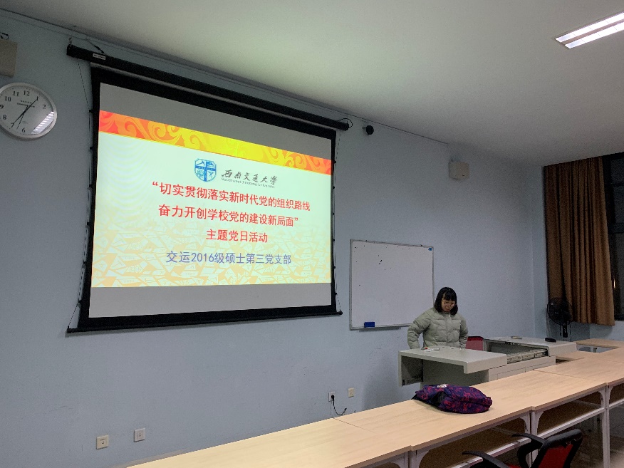为深入学习全国组织工作会议精神,2018年11月28日,437bwin必赢国际16级硕士第三党支部在犀浦校区X9134开展了“切实贯彻落实新时代党的组织路线,奋力开创公司党的建设新局面”党日活动。本次活动由支部书记范双双同志主持。