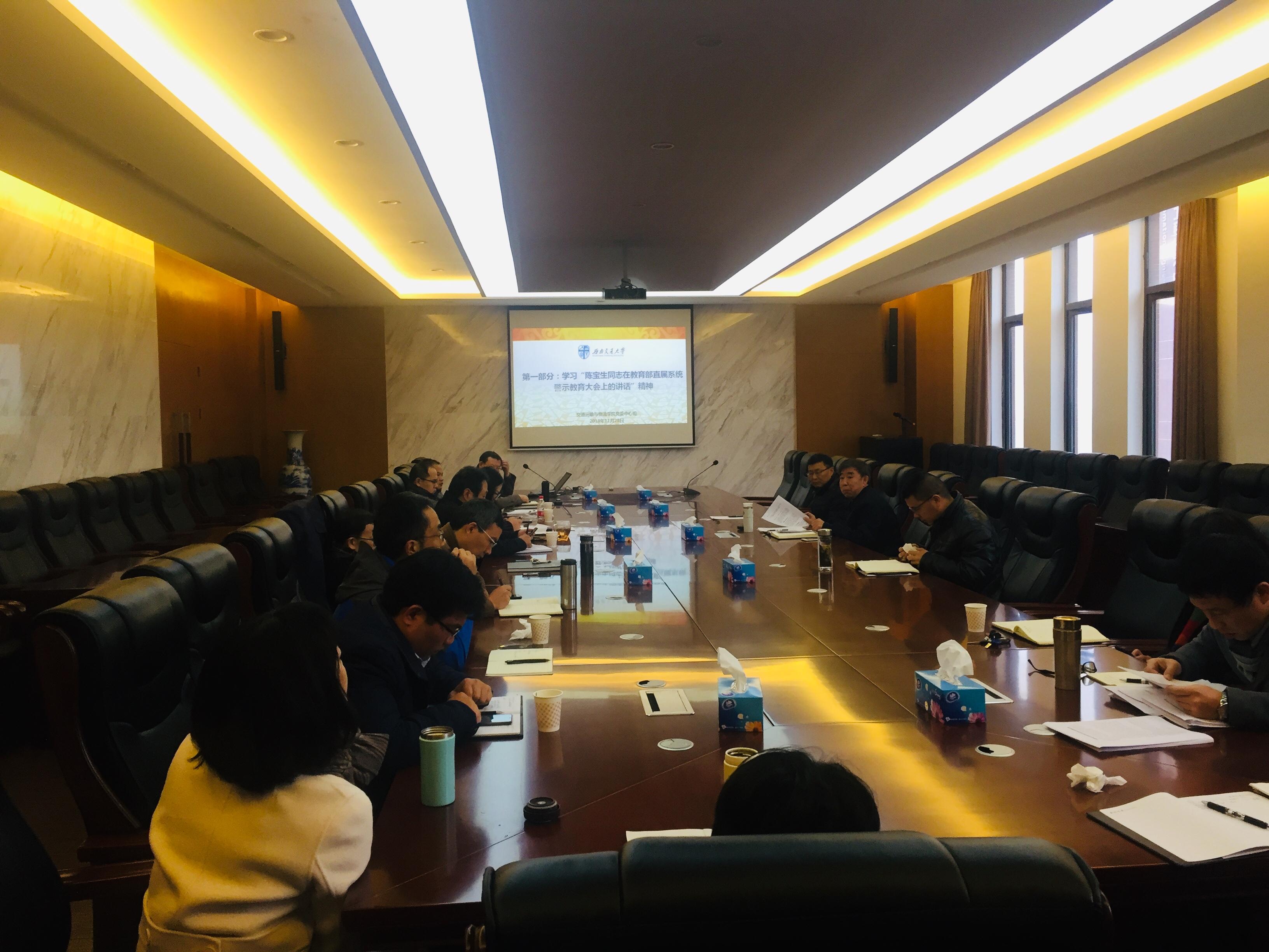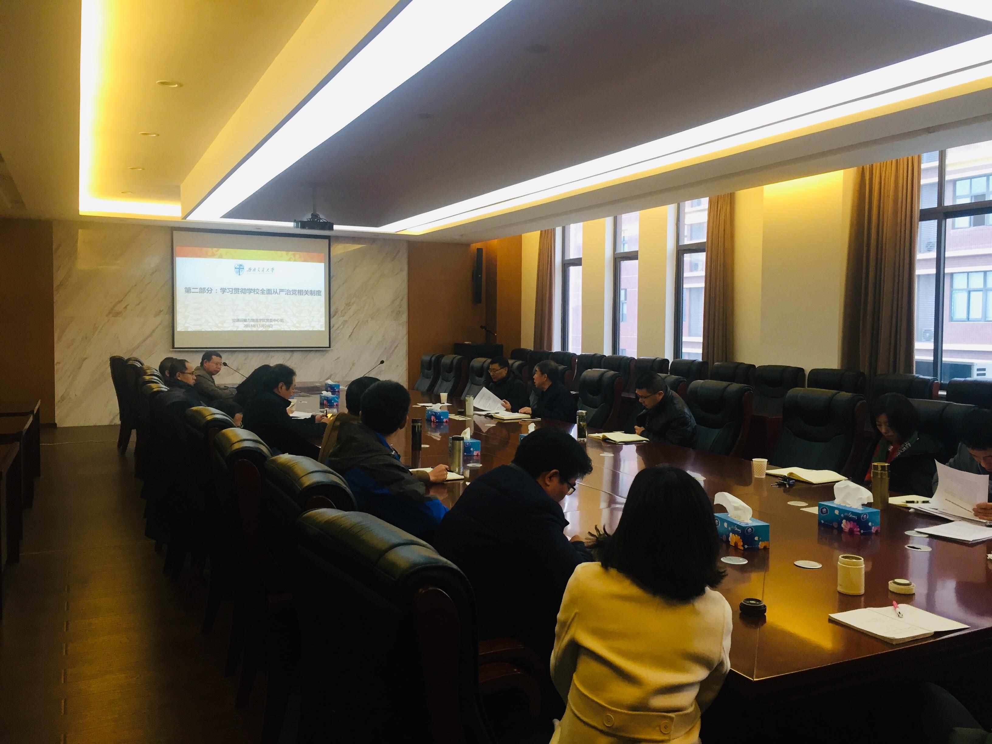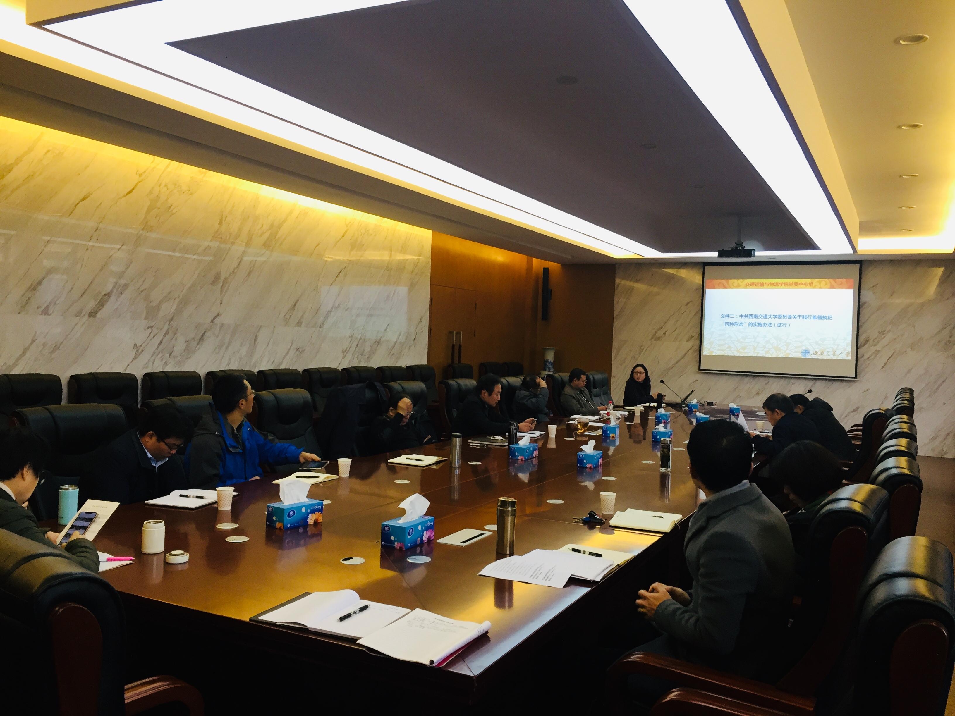 437bwin必赢国际党委于2018年11月28日上午9:00在犀浦校区交运楼417会议室召开党党委中心组学习(扩大会),出席会议的有公司中心组成员、党委委员和纪委委员,会议由党委郝建平书记主持。学习包括两个专题,第一个专题由公司党委书记郝建平同志带领大家集中学习了陈宝生同志在教育部直属系统警示教育大会上的讲话精神,第二个专题由公司纪委书记李国芳同志解读了公司围绕全面从严治党工作,出台的五项制度文件。