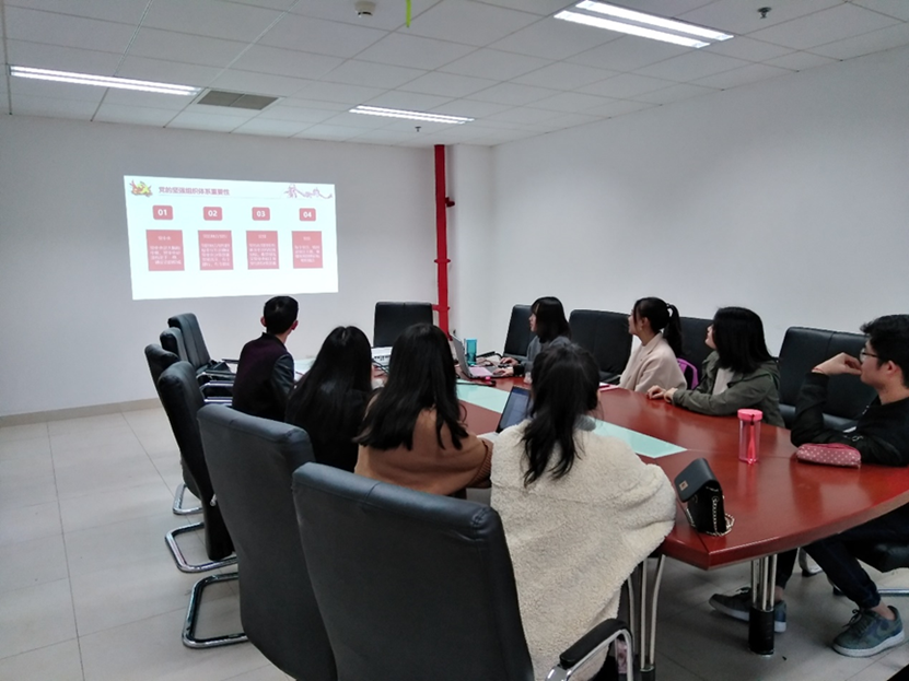 2018年11月15日星期四下午四点半,437bwin必赢国际硕士2017级第三党支部于犀浦校区综合楼757开展“切实贯彻落实新时代党的组织路线,开创公司党的建设新局面”主题党日活动。本次活动由支部成员张杏蔓同志主持。