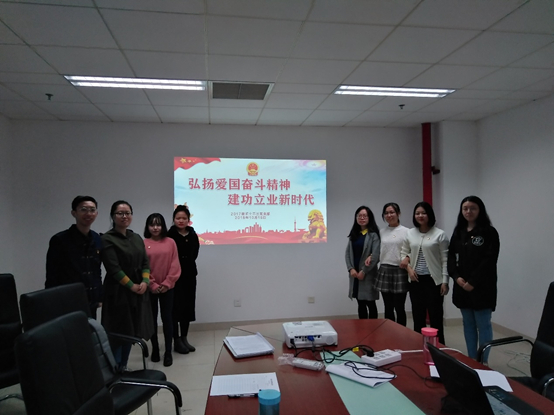 活动最后,支部书记周心怡对本次活动进行了简要的总结,指出大家应当以习近平新时代中国特色社会主义思想为指导,全面贯彻党的十九大和十九届二中、三中全会精神;深入学习贯彻习近平总书记关于人才工作、知识分子工作重要指示精神;突出学用结合、知行合一,不断赋予爱国奋斗精神新的时代内涵。