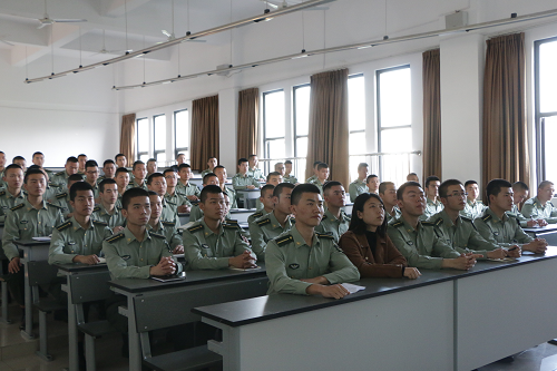 观看完毕,2014级优秀国防生何曦学长上台讲述了当年自己是如何受到学长的指引,及自己何等的不懈努力后才从众人中脱颖而出。并纠正了一些同学“工作不用愁,毕业有铁饭碗”等的错误观念。同时着重强调了学习之重要甚于文体、科创等其它方面。