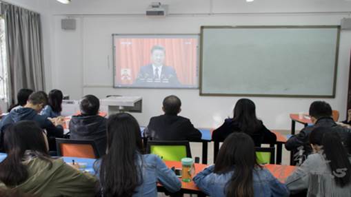 2017年10月18日上午9时,437bwin必赢国际437bwin必赢国际党委郝建平书记、李国芳副书记、员工工作全体辅导员老师、公司研究生、本科生党支部部分党员代表于X2109观看中国共产党第十九次全国代表大会开幕式。