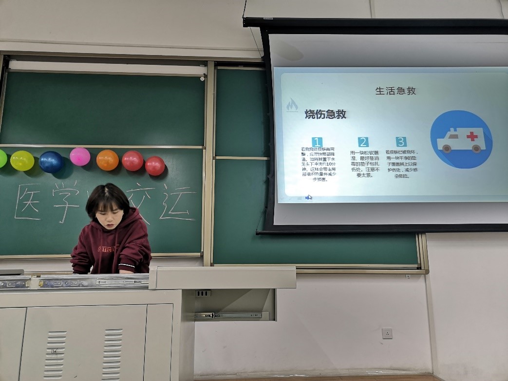 2019级临床医学硕士班的黄鹤同学介绍了生活中遇到的各种突发情况的急救处理方法。主要包括外伤急救,生活急救,疾病急救及其他急救四个方面。并且黄鹤同学以自己的经历出发,分享了自己在日常生活中遇到的一些突发情况及自己的处理方法,急救是生活常识,并建议同学们多多学习相关方面的知识。