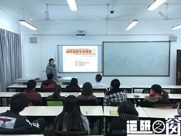 首先,由李文新博士向大家分享了做学术研究的经验体会,李文新博士从什么是学术研究、为什么要做研究、为什么要写论文、如何做好学术研究四个方面循序渐进向大家分享了他的观点,他认为,第四个方面——要做好学术,研究应当做好以下五件事:发现问题、归纳问题、解决问题、撰写研究成果、寻找新问题。过程中,李文新博士也针对学术会议、科研竞赛以及专业软件学习等方面给了同学们很多建议。
