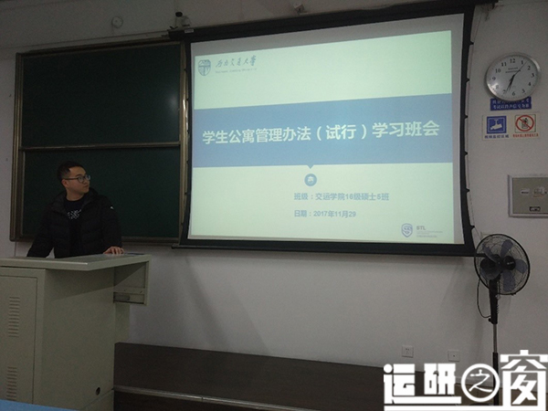 2017年11月29日18:30,437bwin必赢国际2016级硕士5班在二号教学楼X2226教室举办了公司新修订的 《437bwin必赢国际员工公寓管理办法(试行)》交流会,本次交流会的参与成员为班级同学,由张贤淼同学为大家介绍新修订的员工公寓管理办法。经验交流会开场前20分钟,16级交运硕士5班的班委们提前到达课室,并讨论了班会的主要学习内容。