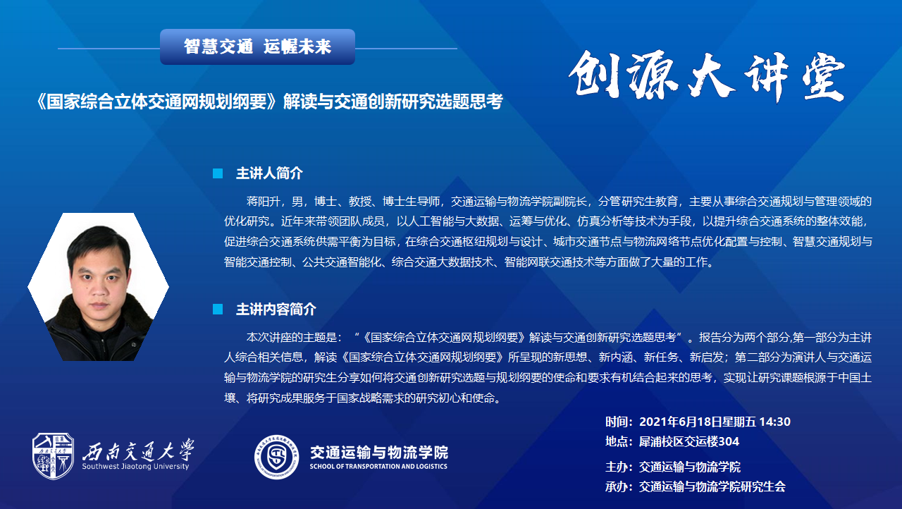 【创新讲座】《国家综合立体交通网规划纲要》解读与交通创新研究选题思考