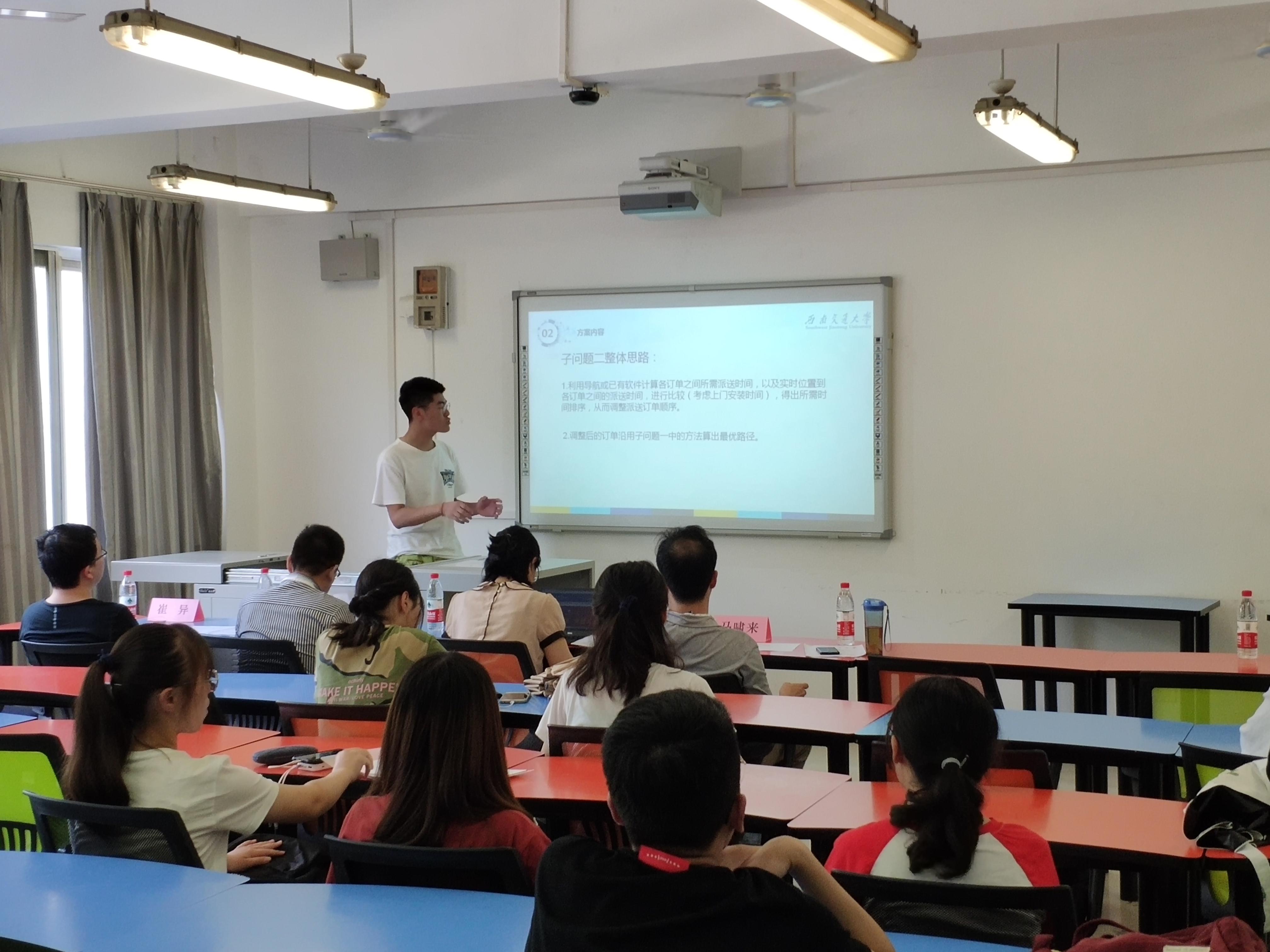 2019年7月5日下午2:30,由437bwin必赢国际主办、物流协会承办的437bwin必赢国际第四届日日顺物流创客训练营校赛开题答辩在犀浦校区X1105教室顺利举办。担任本次比赛的评委老师有郑海莎老师、郭波老师、马啸来老师和崔异老师。