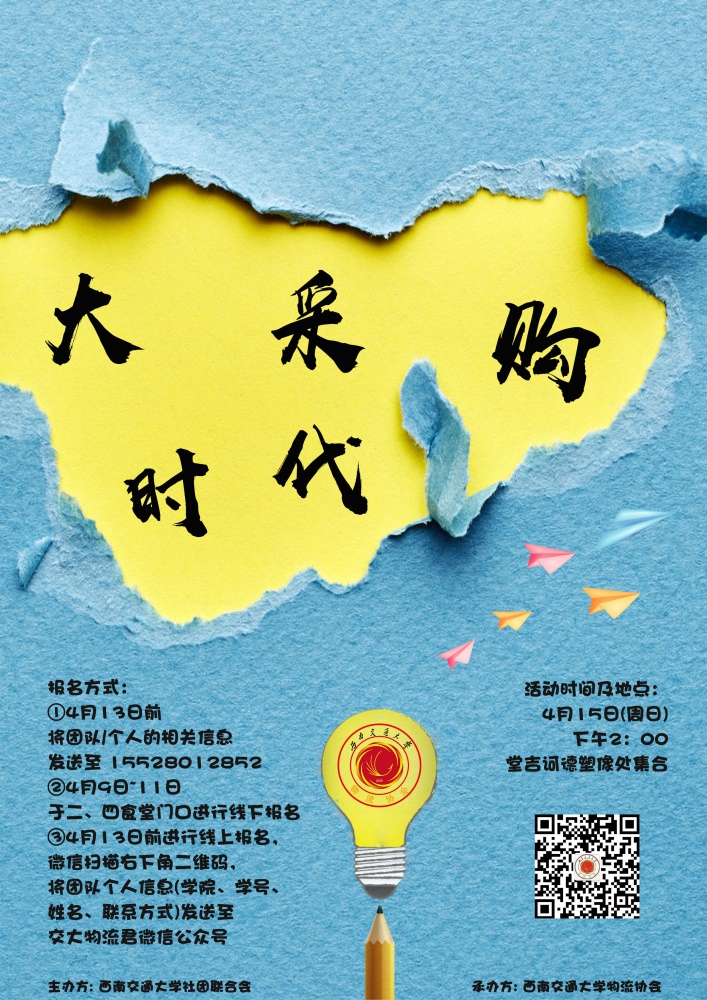 4月10日至4月14日下午六点可以微信公众号“西南交大物流君”线上报名