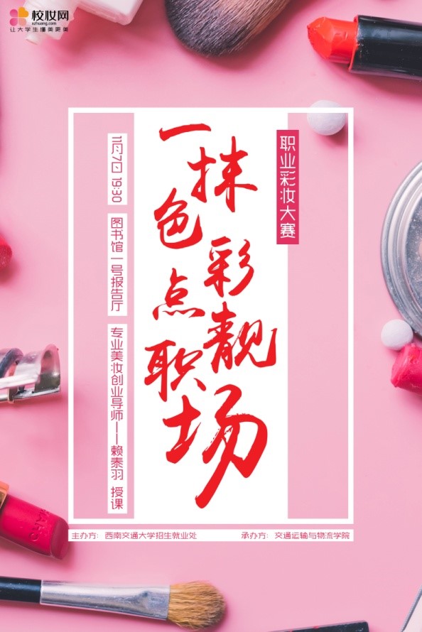 由人才招聘处主办,437bwin必赢国际承办的“一抹色彩,点靓职场”职业彩妆大赛将于2017年11月7日19:30在图书馆一号报告厅正式举办。