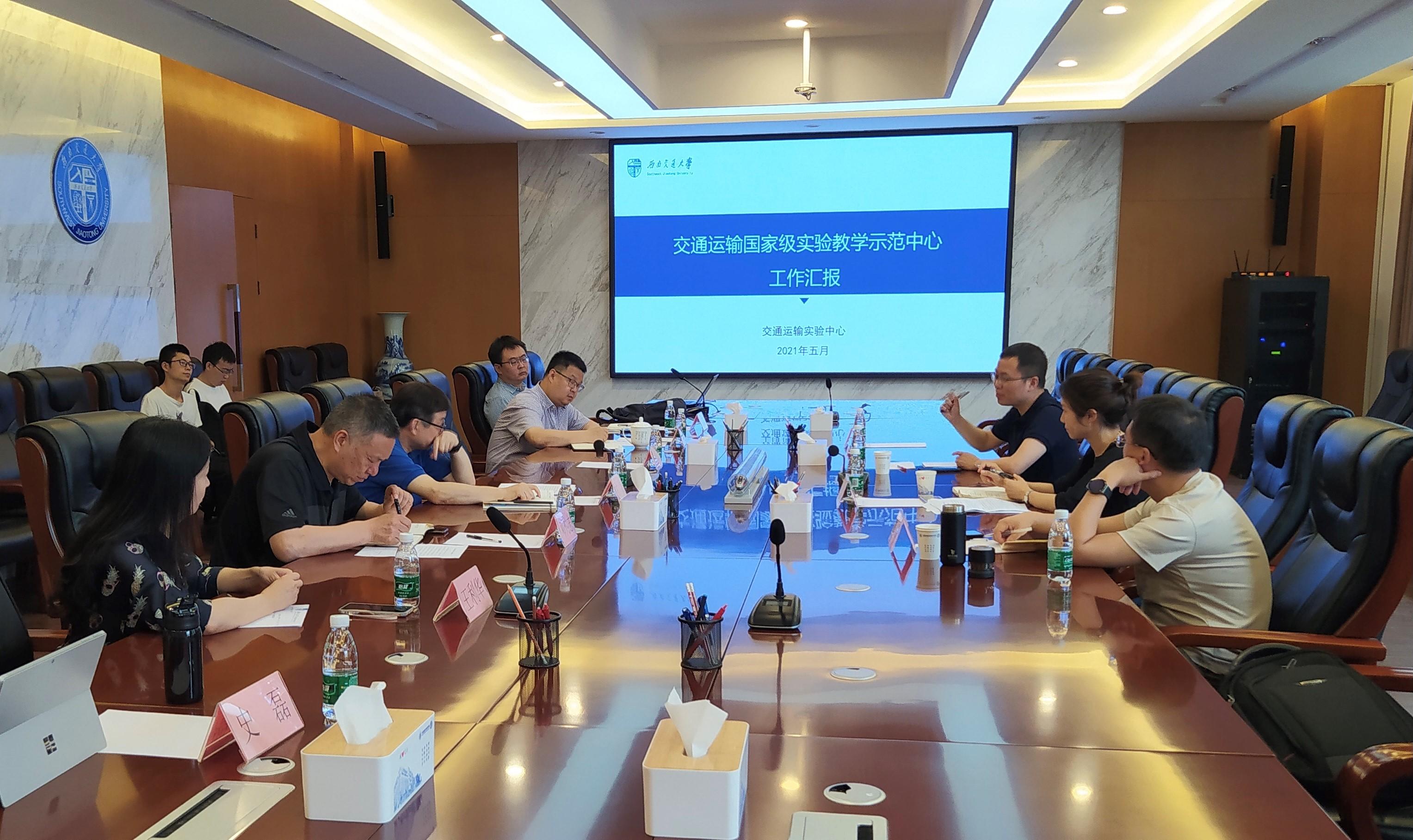 2021年5月12日上午,公司资产与实验室管理处闻毓民副处长、张光远副处长到437bwin必赢国际调研交通运输国家级教学示范中心和虚拟仿真实验教学项目建设情况,资实处高红梅科长、王亚西副科长和公共资源科副科长邓元熙陪同调研,会议在犀浦校区交运楼417会议室举行。公司党委书记甘灵、公司闫海峰副经理、实验中心主任邓灼志老师、副主任王利华老师、郭孜政教授以及实验中心王顺利老师、史磊老师参加会议。会议由闫经理主持。