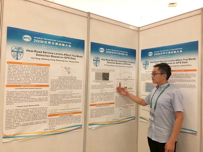 交通工程系多名博士生也在各分论坛上进行了宣讲和墙报展示。姚振兴博士和王彦琛博士分别在“交通数据科学理论与方法”和“数据融合和分析及特征提取”论坛上就题为“Arterial Link Travel Time Estimation Considering Traffic Signal Delays Using Cellular Handoff Data”和“Travel Route Detection Based on Earth Mover's Distance Algorithm Using Wireless Cell Trajectory Data”进行宣讲,分享了利用手机切换信令数据在出行时间估计和出行路径提取上的研究成果。姜海航博士在“数据与信息”分会场上就题为“How Road Service Levels Affect Trip Mode Detection Based on GPS Data”进行墙报展示,讨论道路服务水平对基于GPS数据的交通方式提取的影响。此次大会增强了交通工程系与海内外学者的交流,充分展现了交大交通人的风采。