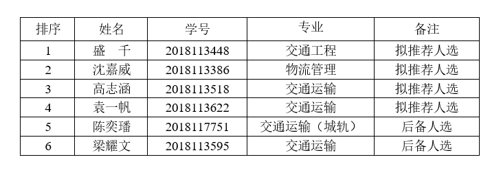 现将2022届交通运输专业、交通运输(城市轨道交通)专业、交通运输詹天佑班、交通工程专业、安全工程专业、物流工程专业以及物流管理专业免研综合成绩排名进行公示。本成绩修整了部分员工进行成绩更正过程中,豁免了的课程依然计算的问题。本成绩不包含中法4+4员工的成绩和免研辅导员综合测评加分项。免研辅导员综合测评加分结果按员工工作部公示结果为准。