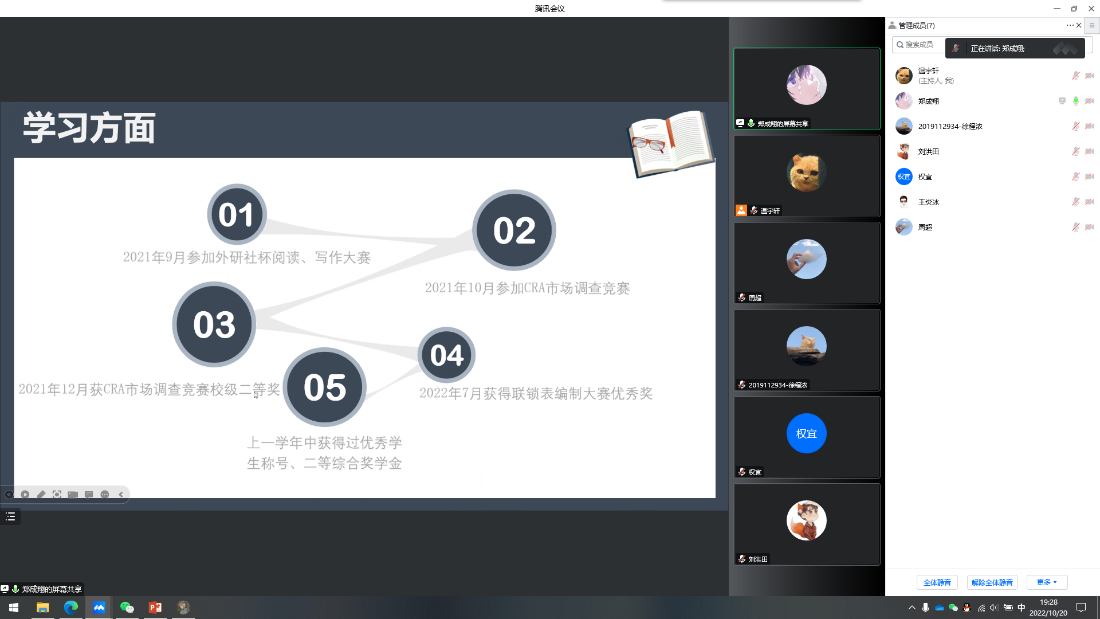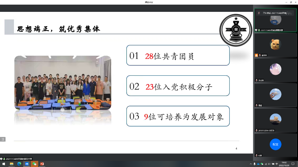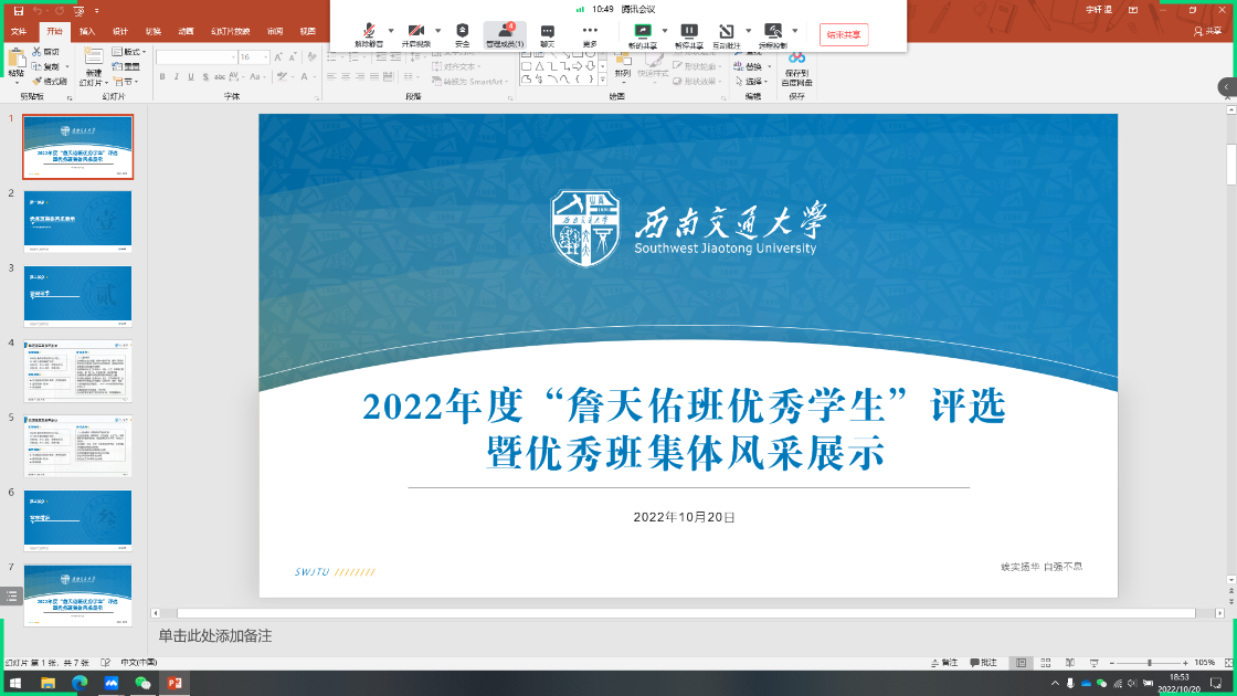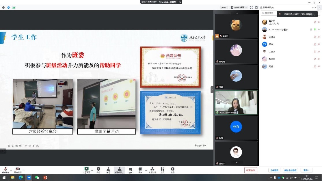 获得本年度詹天佑班优秀班集体的2021级詹天佑班首先进行风采展示。班长邓爽从各方位展示了班级建设上的各项成果和班级同学积极向上的精神风貌。