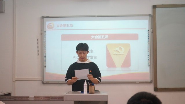在宣誓仪式完成后,新团员代表孔少琪同学发言。他表示能成为一名优秀的共青团员,心中充满了自豪感和光荣感,新团员需要树立坚定的理想信念,确立正确的价值观,勇于担当时代重任,不断学习,不断努力,不断提高。