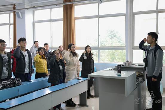 会议伊始,甘升碧老师为18级同学们讲解宿舍安全和诚信考试的要求。甘老师为大家宣读《437bwin必赢国际公寓管理办法(试行)》告诫同学们不要在宿舍内使用或存放违章电器,带领大家一同学习《437bwin必赢国际本科生考试违规处理办法》,详细讲解了校规校纪的要求,希望同学们不要在考试中作弊,班委们以身作则并在生活中影响和监督同学们。随后,全体班委代表进行宣誓。在物流二班班长王彬旭领誓下,在场班委进行了严肃的宣誓,声音洪亮、精神饱满。